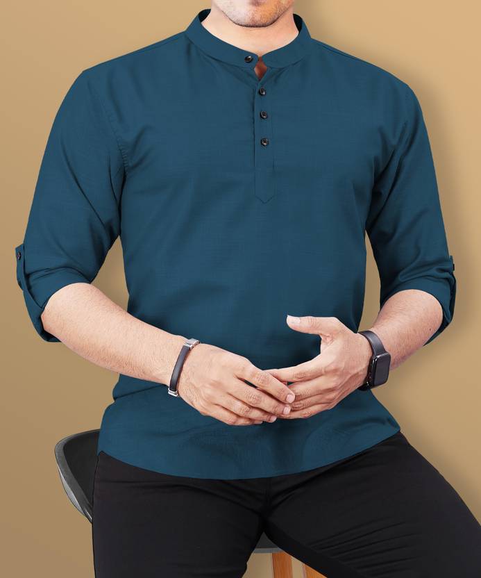 VeBNoR Men Regular Fit Solid Mandarin Collar Casual Shirt