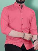 Designed with a secure buttoned closure, this shirt ensures ease of wear and removal. The high-quality buttons are firmly stitched which reduces the chances of them coming loose over time. The mandarin collar adds a modern touch, lending an understated elegance to the design, while the curved hem offers a stylish finish that can be worn tucked or untucked, depending on the occasion.