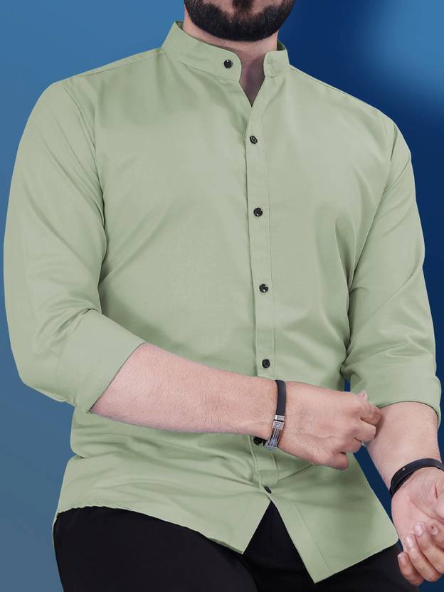 VeBNoR Men Regular Fit Solid Mandarin Collar Casual Shirt