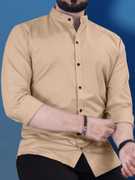 Designed with a secure buttoned closure, this shirt ensures ease of wear and removal. The high-quality buttons are firmly stitched which reduces the chances of them coming loose over time. The mandarin collar adds a modern touch, lending an understated elegance to the design, while the curved hem offers a stylish finish that can be worn tucked or untucked, depending on the occasion.