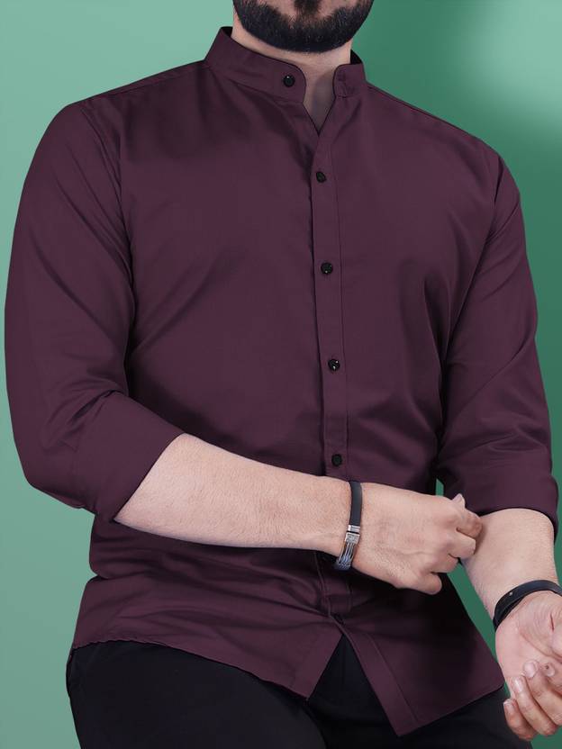 VeBNoR Men Solid Casual Purple Shirt