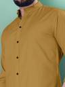 The shirt has full-length sleeves, which lend a more formal appearance. This men shirt versatility and ability to fit into various settings are enhanced by the full sleeves' sense of class and professionalism. The sleeves give the entire outfit a polished and refined appearance, whether they are rolled up for a more casual approach or worn down for a formal look.