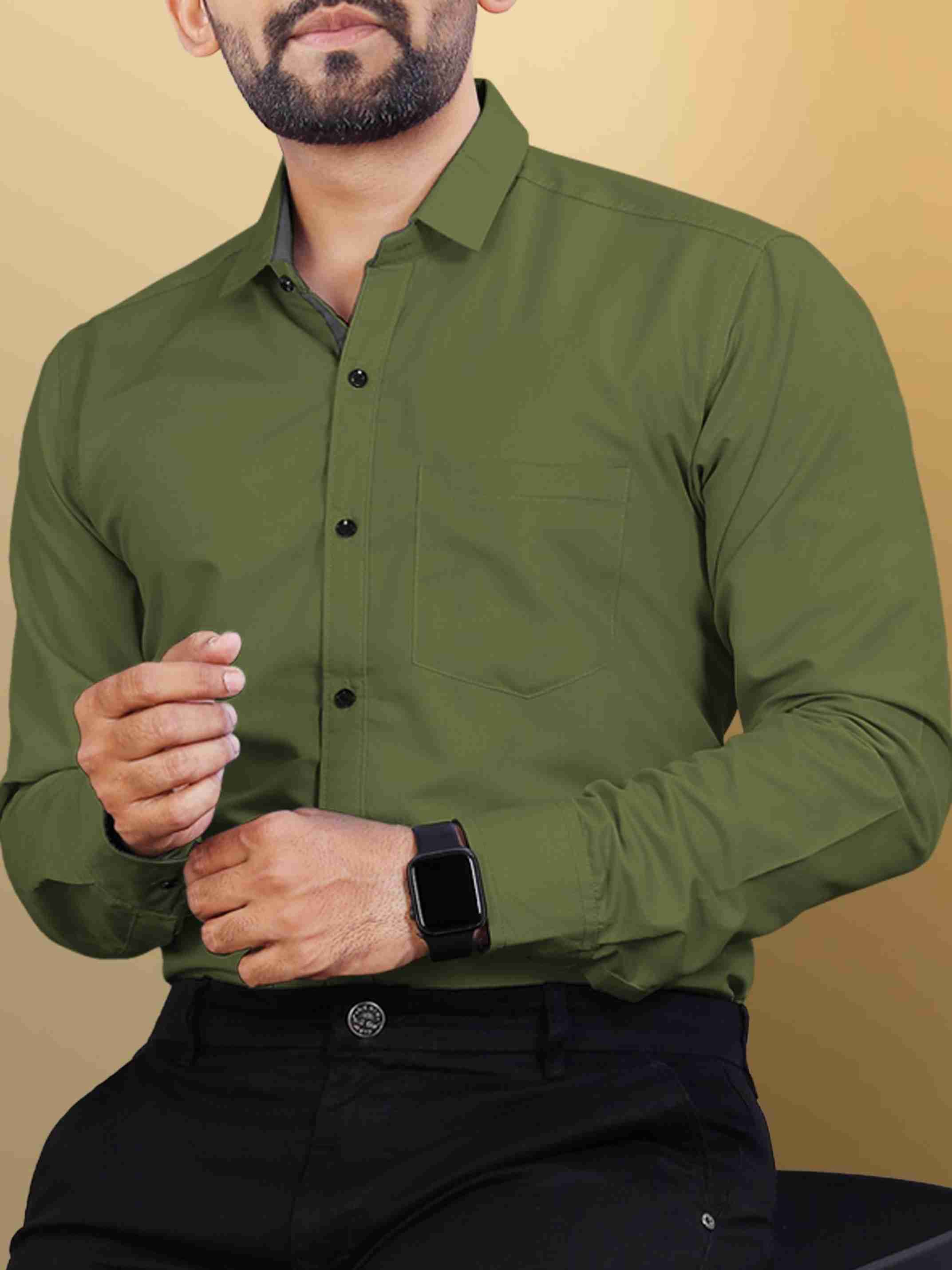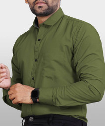 Men Regular Fit Solid Button Down Collar Formal Shirt