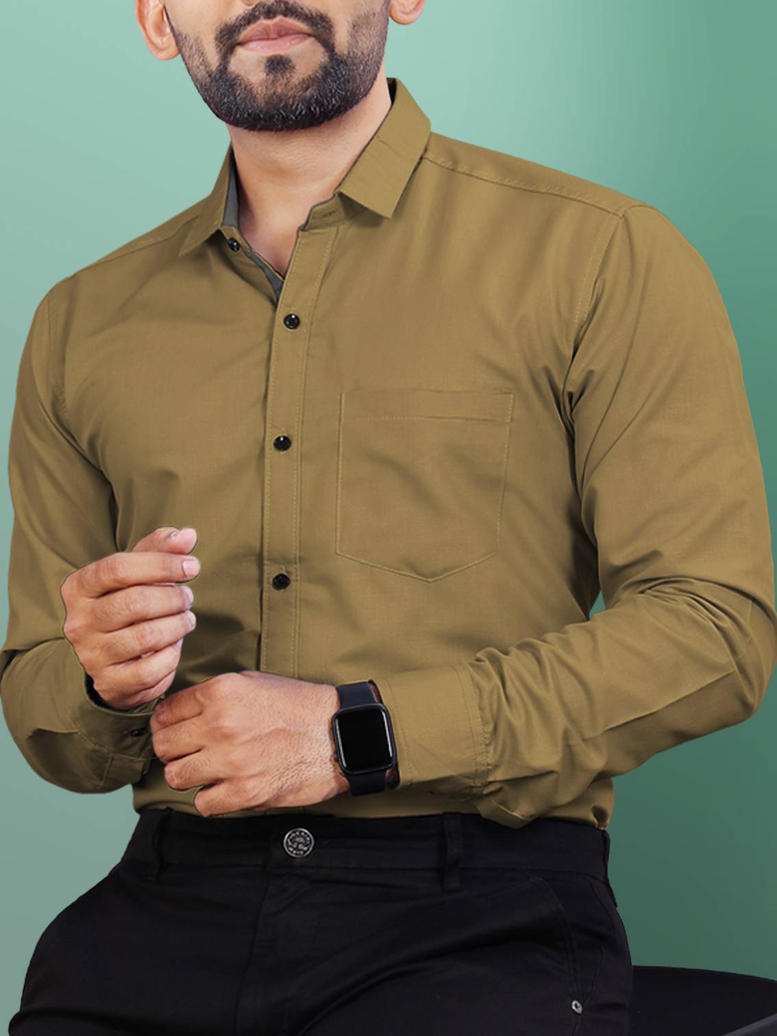VeBNoR Men Solid Formal Khaki Shirt