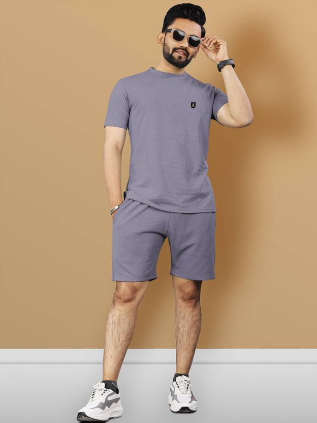 VeBNoR Men Solid Grey Night Suit Set
