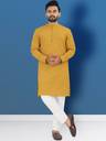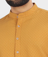VeBNoR Men Solid Jacquard Straight Kurta  (Yellow)