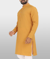 Adapting a modern yet classic design, this men’s kurta blends casual comfort with refined elegance. The carefully detailed stitching and clean lines enhance its sophisticated appeal, making it a versatile choice for various occasions. The thoughtfully crafted design strikes a balance between simplicity and sophistication.