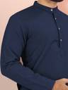 Adapting a modern yet classic design, this men’s kurta blends casual comfort with refined elegance. The carefully detailed stitching and clean lines enhance its sophisticated appeal, making it a versatile choice for various occasions. The thoughtfully crafted design strikes a balance between simplicity and sophistication.