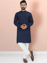 Offering a mandarin collar, this kurta brings a neat and sophisticated touch to your wardrobe. The buttoned placket enhances the structured look, while two functional side pockets provide convenience for carrying small essentials. These thoughtful details add both style and practicality, which makes this kurta a versatile addition to any collection.