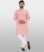 VeBNoR Men Solid Jacquard Straight Kurta  (Pink)