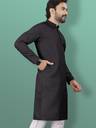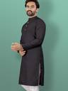 Boasting a sophisticated pattern, this kurta for men effortlessly bridges the gap between casual and refined aesthetics. The tasteful design of this mens kurta adds visual interest without overpowering your ensemble, allowing for versatile styling options suitable for various occasions, from casual outings to festive gatherings. This kurta for mens festival is suitable ethnic wear for traditional occassions.