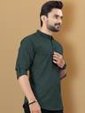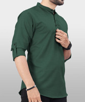 Designed with a hip-length cut and a straight fit, this men's kurta offers a flattering silhouette for all body types. It features three-quarter sleeves, providing a modern look that balances comfort and style. The button closure at the front enhances its overall aesthetic while allowing for easy wear and removal. Thanks to its versatile design, this kurta adapts seamlessly to various settings, from traditional celebrations to everyday wear.