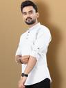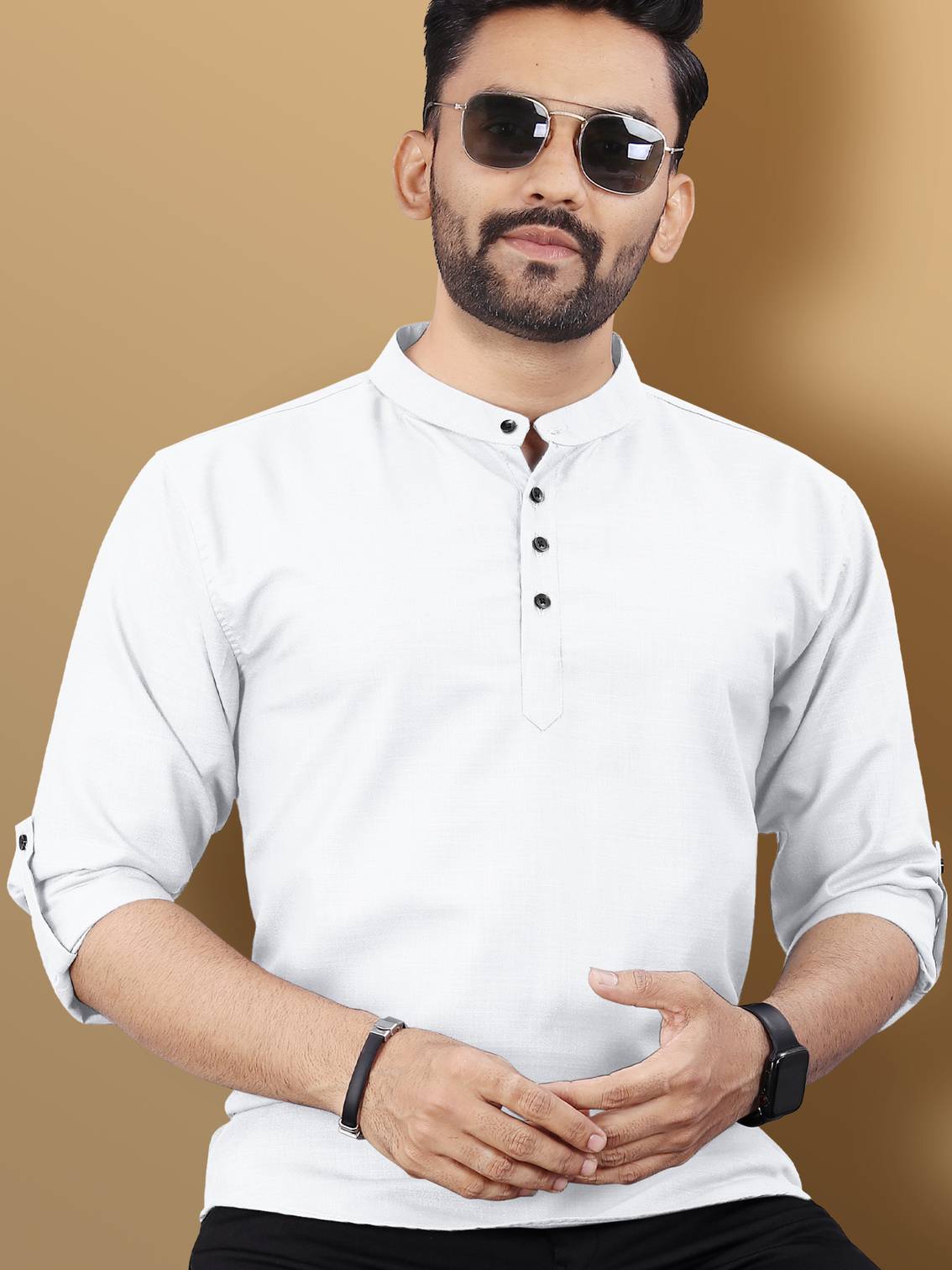 Featuring a solid pattern, this shirt kurta offers multipurpose usage, allowing you to pair it with a wide range of pants, shorts, or jeans. Moreover, the simplicity of these men's kurtas ensures that it is appropriate for various occasions, from a casual night out to a wedding dinner party. While you can pair this kurta with a pair of light-coloured shorts and sneakers for a comfortable and casual look, it can also be used with a pair of chinos and leather shoes for a formal look.