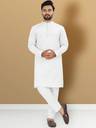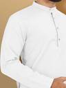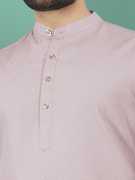 Adapting a modern yet classic design, this menβs kurta blends casual comfort with refined elegance. The carefully detailed stitching and clean lines enhance its sophisticated appeal, making it a versatile choice for various occasions. The thoughtfully crafted design strikes a balance between simplicity and sophistication.