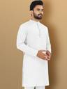 Adapting a modern yet classic design, this men’s kurta blends casual comfort with refined elegance. The carefully detailed stitching and clean lines enhance its sophisticated appeal, making it a versatile choice for various occasions. The thoughtfully crafted design strikes a balance between simplicity and sophistication.