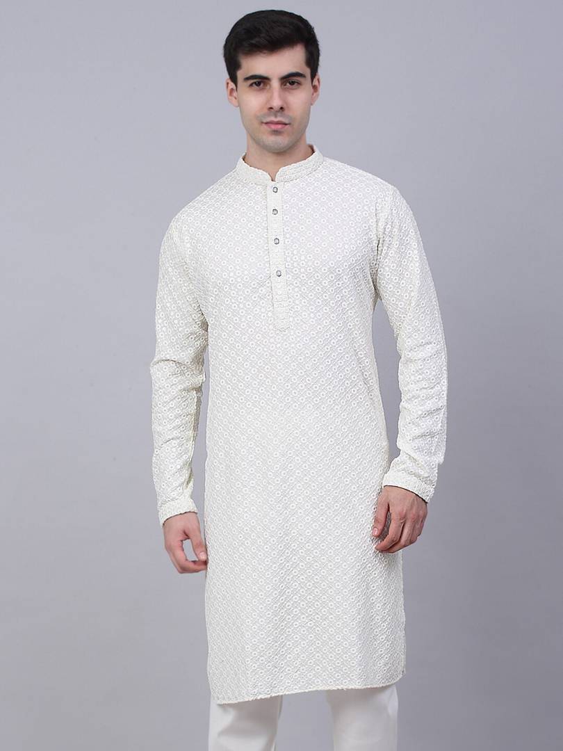Including full sleeves, this kurta enhances its elegant and sophisticated appeal. So, whether left down for a polished finish or rolled up for a relaxed vibe, the sleeves contribute to the versatility of this timeless piece.