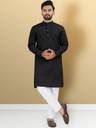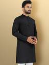Adapting a modern yet classic design, this men’s kurta blends casual comfort with refined elegance. The carefully detailed stitching and clean lines enhance its sophisticated appeal, making it a versatile choice for various occasions. The thoughtfully crafted design strikes a balance between simplicity and sophistication.