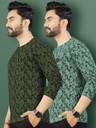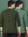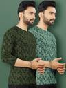 VeBNoR Pack of 2 Men Printed Round Neck Polycotton Dark Green, Green T-Shirt