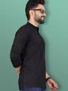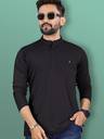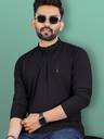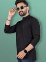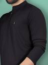 Men Solid Mandarin Collar Polyester Black T-Shirt