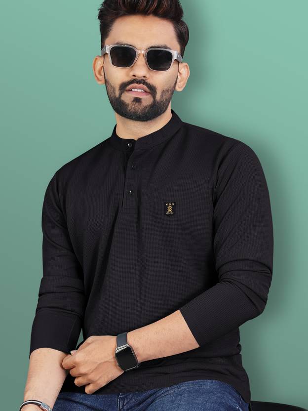 VeBNoR Solid Men Mandarin Collar Black T-Shirt