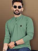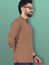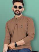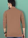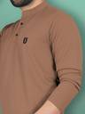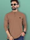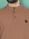 Men Solid Mandarin Collar Polyester Brown T-Shirt