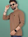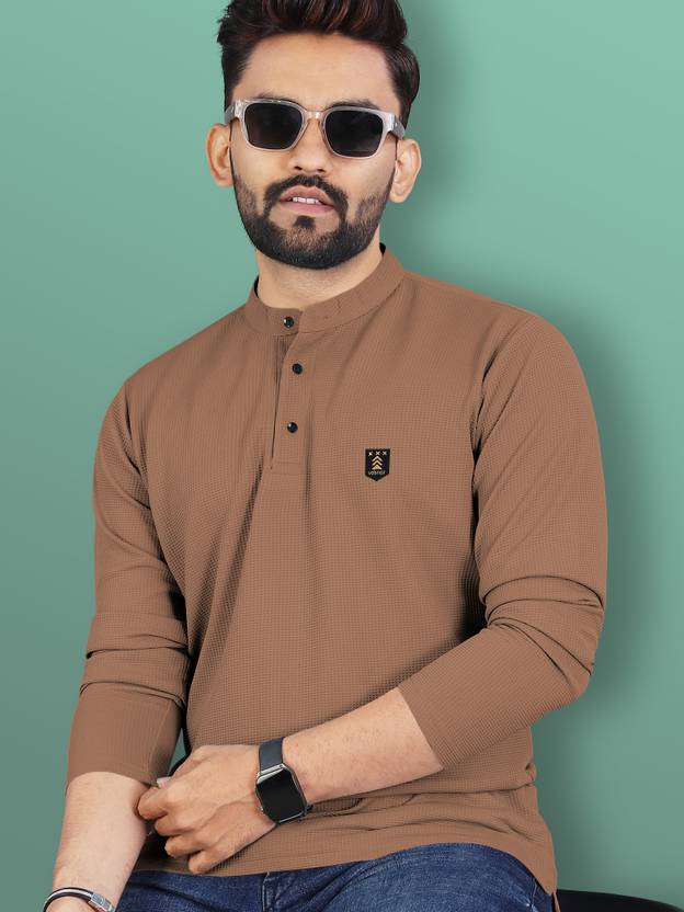 VeBNoR Solid Men Mandarin Collar Brown T-Shirt