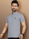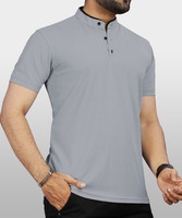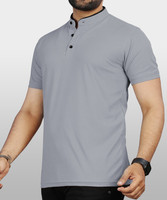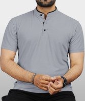 VeBNoR Solid Men Mandarin Collar Grey T-Shirt