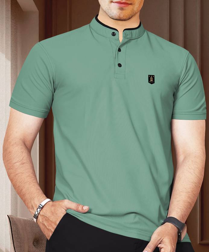 VeBNoR Solid Men Polo Neck Light Green T-Shirt