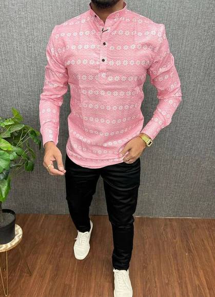 VeBNoRΒ Men Solid Mandarin Collar Polyester Pink T-Shirt