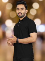 VeBNoR Solid Men Polo Neck Black T-Shirt