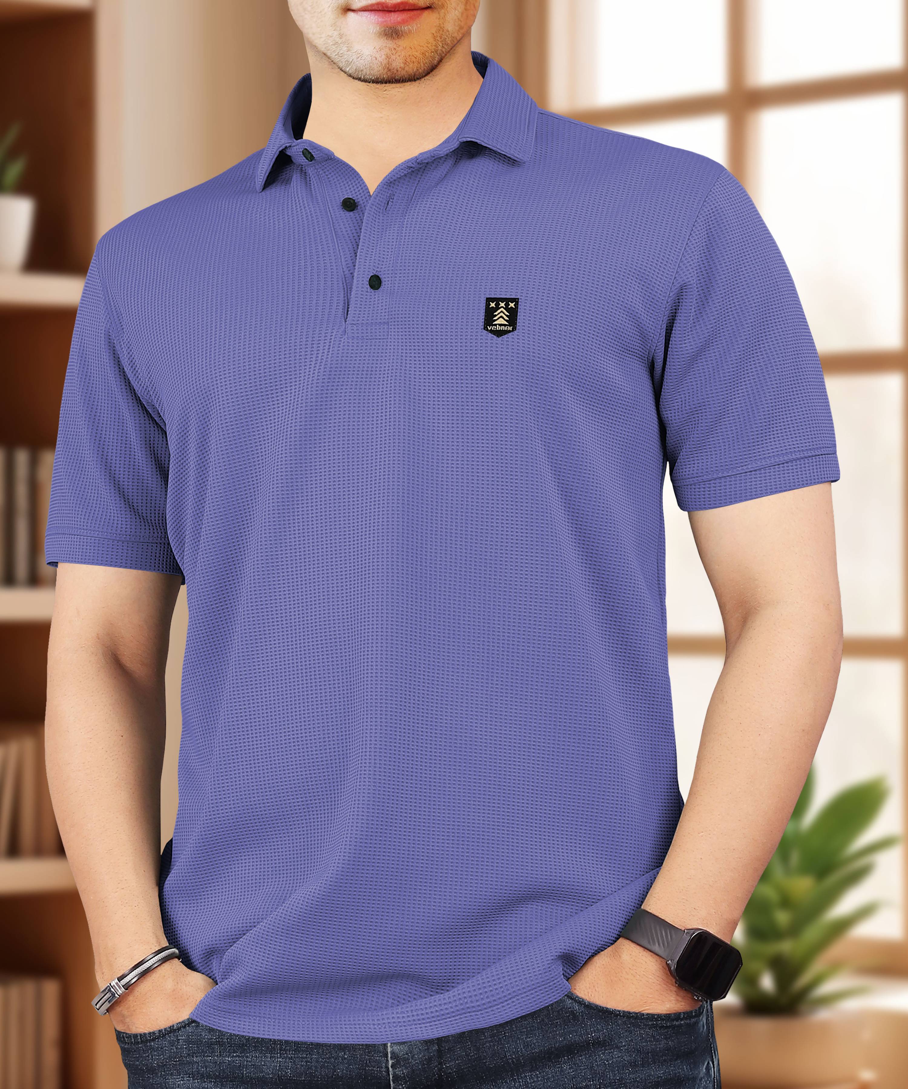 VeBNoR Men Solid Polo Neck Polyester Blue T-Shirt