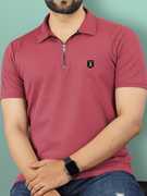 VeBNoR Solid Men Zip Neck Brown T-Shirt