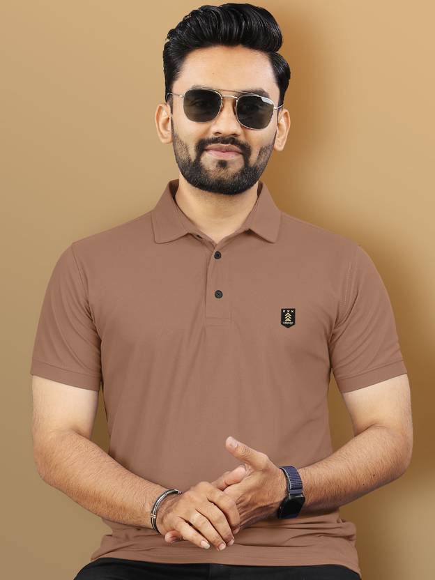 VeBNoR Men Solid Polo Neck Polyester Brown T-Shirt