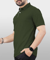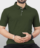 VeBNoR Solid Men Polo Neck Green T-Shirt