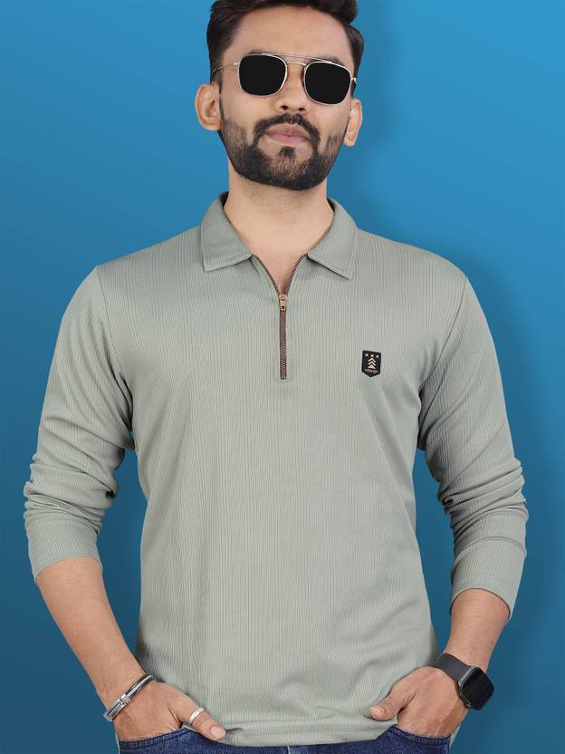 VeBNoR Solid Men Polo Neck Grey T-Shirt