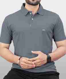 Men Solid Polo Neck Polyester Grey T-Shirt