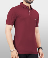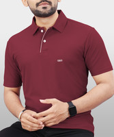 VeBNoR Solid Men Polo Neck Maroon T-Shirt