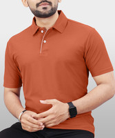 VeBNoR Solid Men Polo Neck Orange T-Shirt