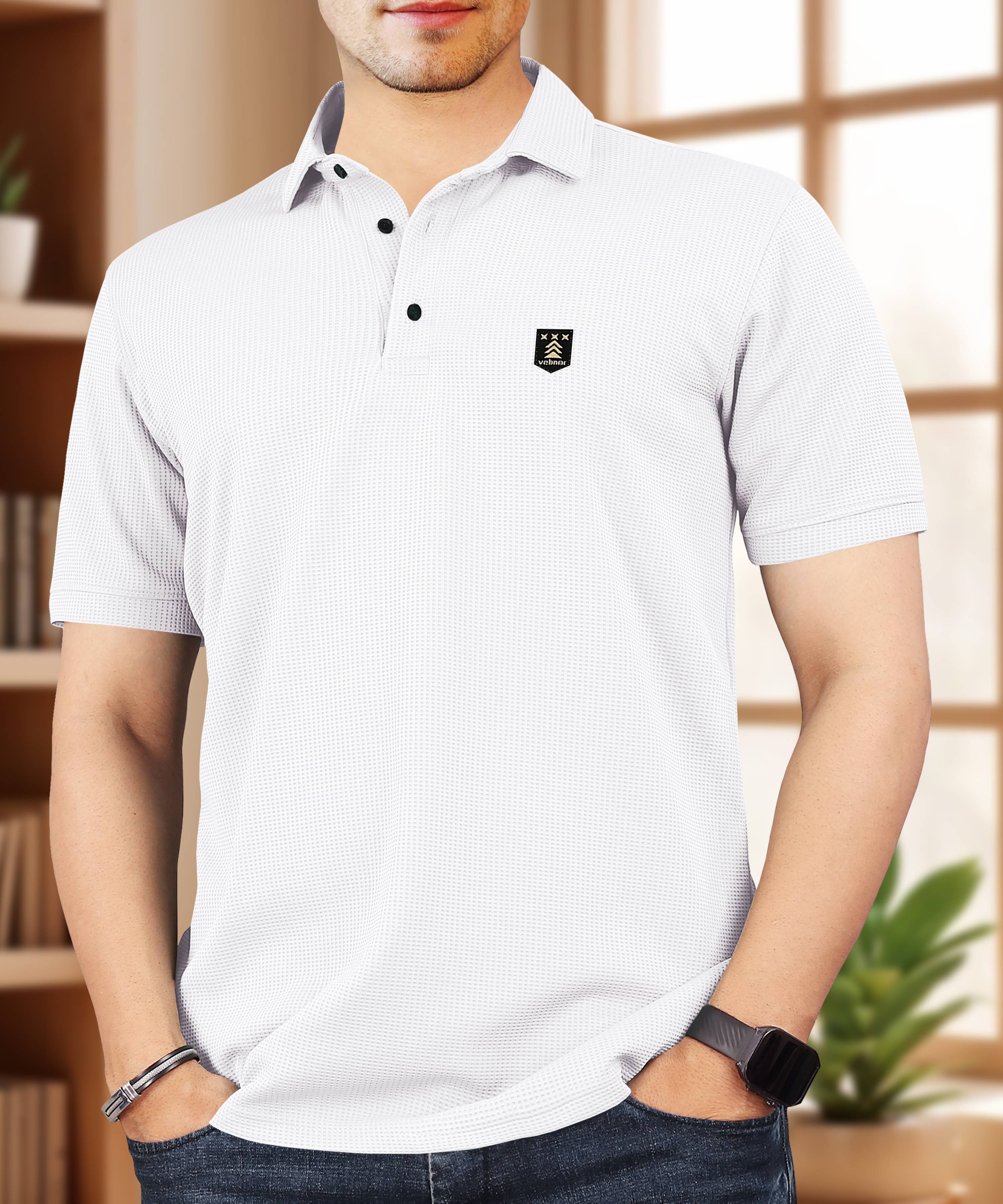 VeBNoR Men Solid Polo Neck Polyester White T-Shirt