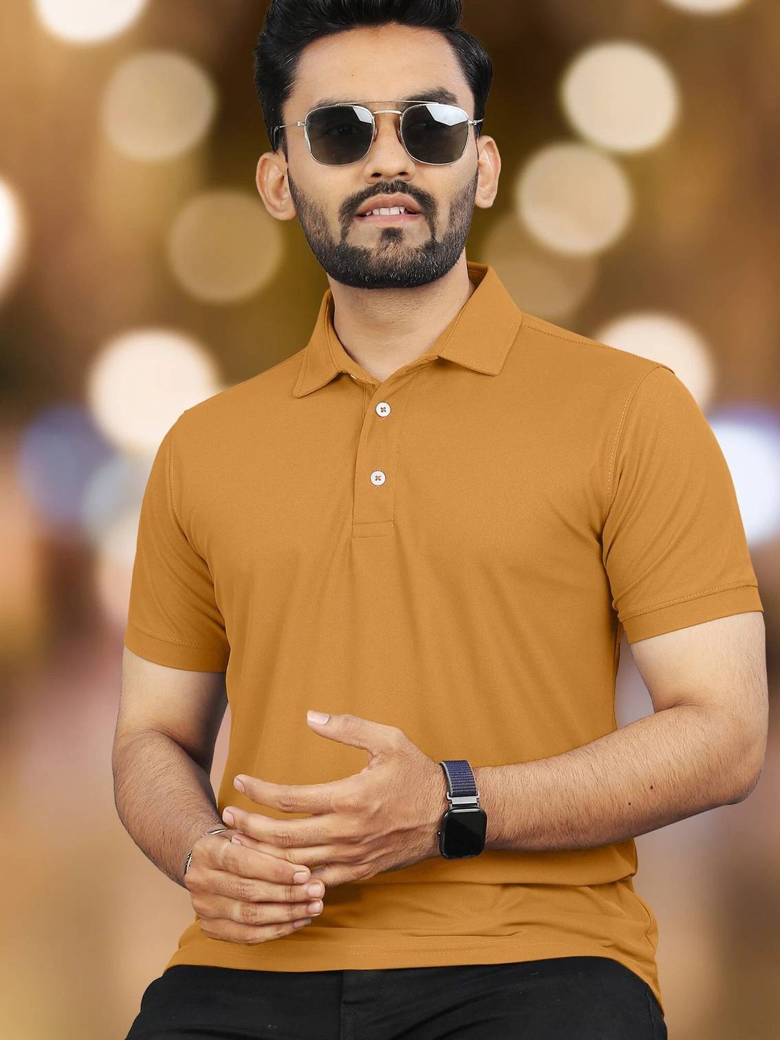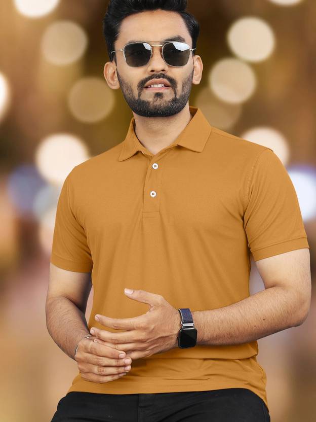 VeBNoR Solid Men Polo Neck Yellow T-Shirt