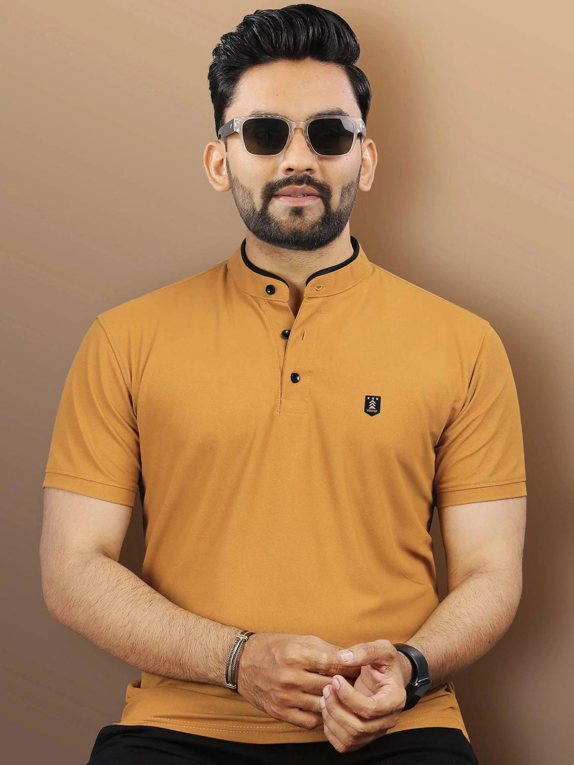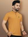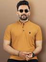 VeBNoR Men Solid Mandarin Collar Polyester Yellow T-Shirt