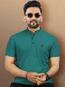 Shaped with a stylish mandarin neck, this men's T-shirt offers a modern yet versatile look suitable for different occasions. The simple neckline provides a comfortable fit around the neck without feeling restrictive, which allows for effortless wear throughout the day.
