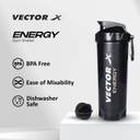 VECTOR X 600 ml Plastic Shaker (Pack of 1, Black)