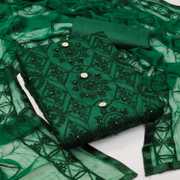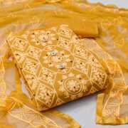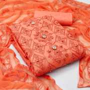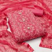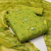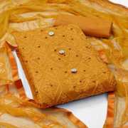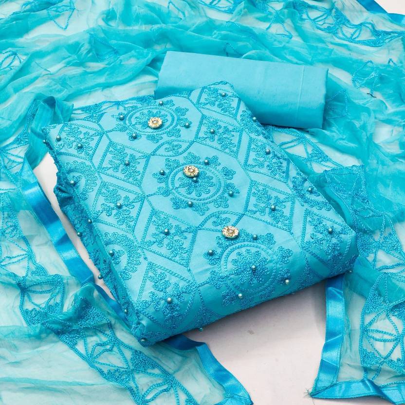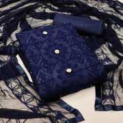 Unstitched Cotton Blend Kurta & Churidar Material Embroidered