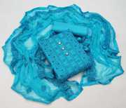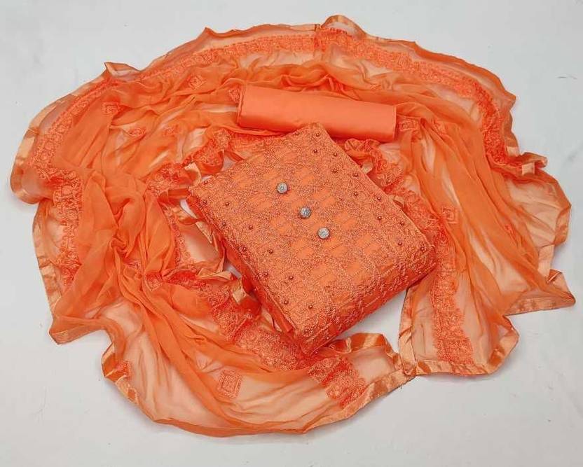 An unstitched Chanderi kurta and churidar material that's embellished speaks to a combination of traditional fabric with added adornments for a touch of luxury. Chanderi: Chanderi is a traditional, lightweight fabric known for its sheer texture and fine, luxurious feel. It finds its origin in Chanderi, a town in Madhya Pradesh, India. The fabric can be made from pure silk, cotton, or a silk-cotton blend, lending it a unique shimmer.