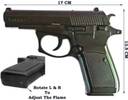 Vedara ® Heavy Vintage Half Cock Barrel Metal Body Steel Gun Shape Jet Flame Windproof Pocket Lighter (Black)