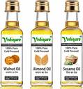 vediqure 100% Pure Cold Pressed Edible Akhrot Ka Tel, Badam Ka Tel and Til Ka Tel - 100 ML Almond Oil + 100 ML Sesame Oil + 100ML Walnut Oil Glass Bottle (3 x 100 ml)