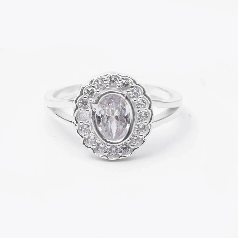 Elevate your style with this oval diamond ring, featuring a stunning oval-cut American Diamond at its center, beautifully surrounded by a halo of sparkling stones. The silver-plated ring is designed with a wide, openwork band for added charm and comfort. Whether you’re attending a wedding, party, or looking for a daily wear accessory, this party wear ring for women is the perfect choice.