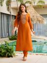 A good quality embroidered & printed nyra cut suit. It will give them a classic and trendy look. It is light in weight and will be soft against your skin. This is made as per the latest trends to keep you in sync with high fashion and with casual and other occasion, it will keep you comfortable all day long. It is capable of making you look gorgeous. Wear it and put your step in the world of fashion. It looks stunning every time you match it with accessories. The lovely design forms a substantial feature of this nayra kurti set.