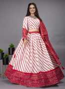 Printed Semi Stitched Lehenga Choli (Green, White)